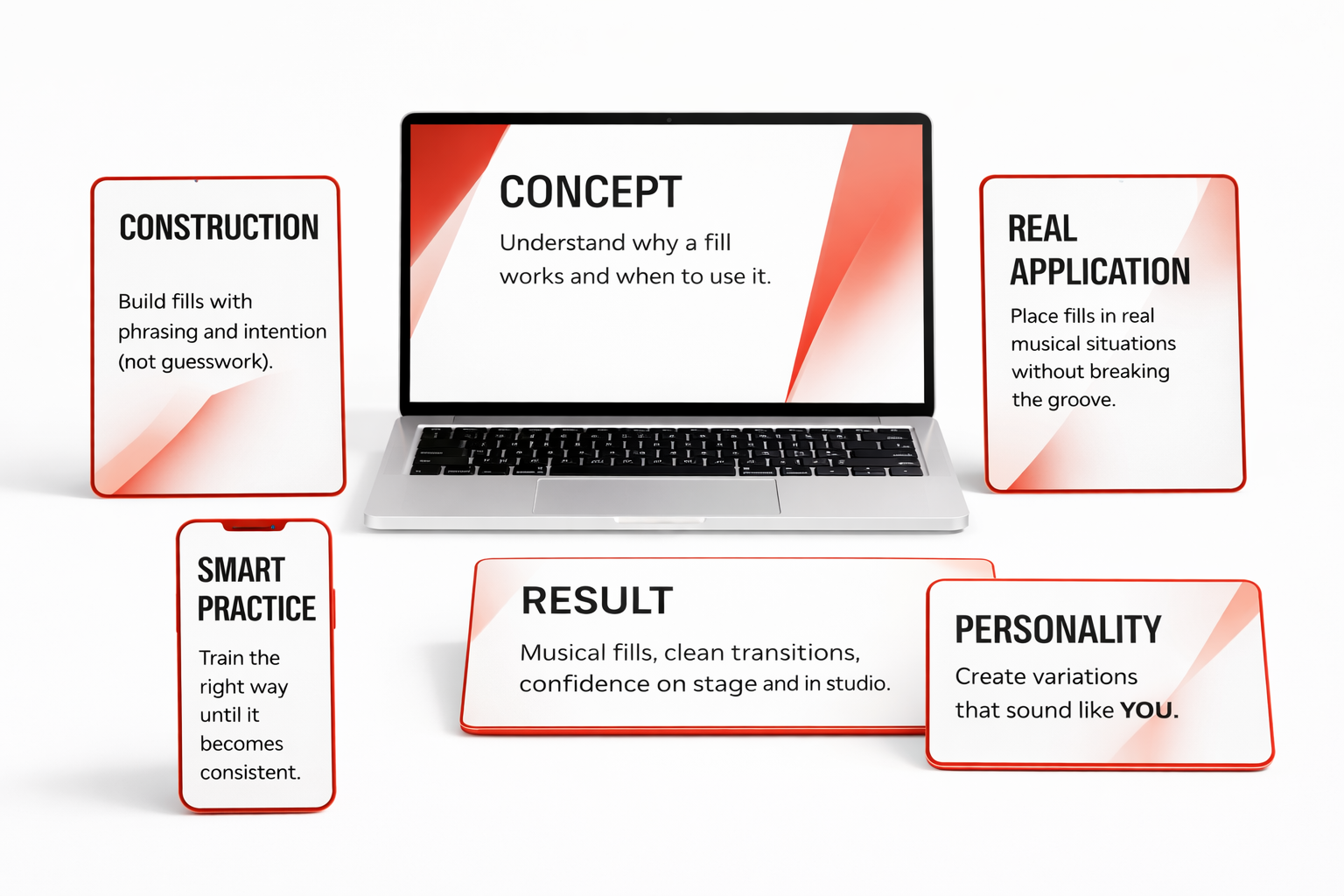 ✅You’ll understand the rhythmic foundations, the creative logic and the musical mindset behind fills that actually sound professional…